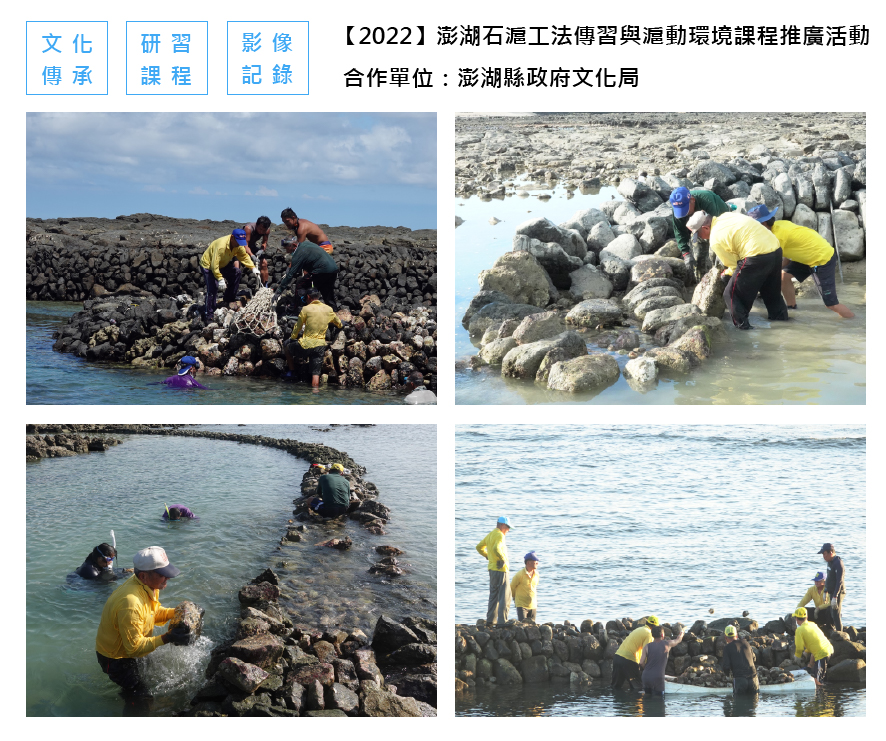 例如:石滬環境教育、石滬工法傳習、漁村創意遊程、珊瑚復育推廣